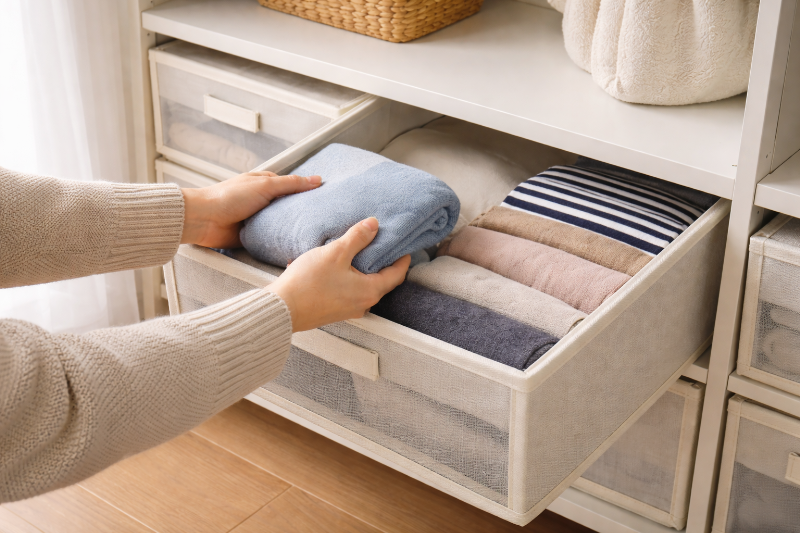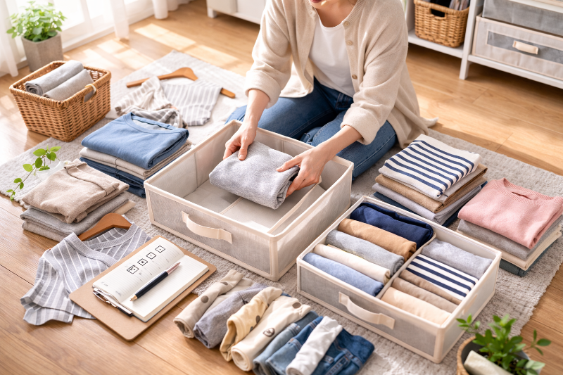 例えば、衣類収納ケースにシーズンオフの服をぎゅうぎゅうに詰め込んでしまうケースがあります。収納した直後は満足感がありますが、次のシーズンに取り出すとき、しわになっていたり、探しにくかったりします。